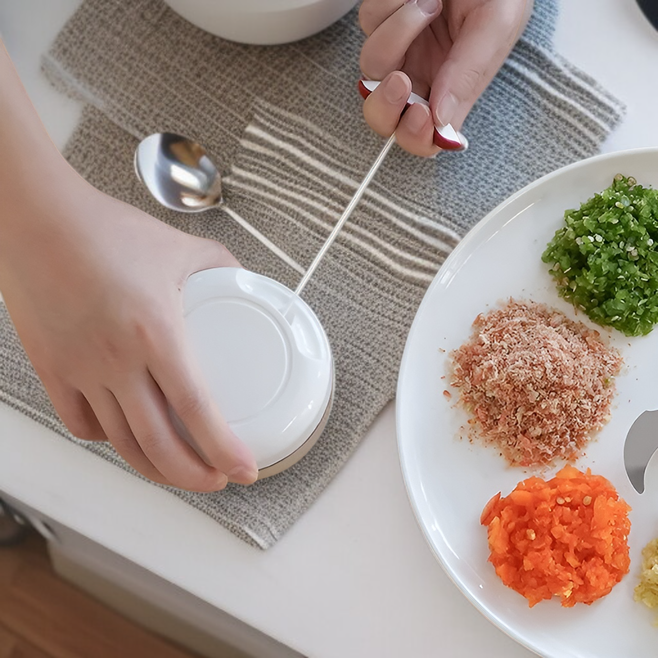 ● 다용도 미니 믹서기로 야채, 마늘, 양파, 고기 등 다양한 재료를 한 번에 빠르고 손쉽게 다질 수 있어 요리 준비 시간이 대폭 단축됩니다. ● 이유식부터 각종 음식 재료까지 위생적이고 세밀하게 분쇄 가능하여 가족 건강을 지키는 필수 주방 아이템입니다. ● 컴팩트한 사이즈와 간편한 사용법으로 좁은 주방에서도 부담 없이 활용할 수 있으며, 분리세척이 가능해 청소도 매우 편리합니다.