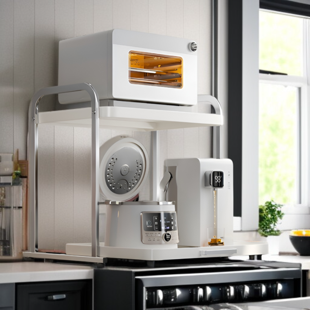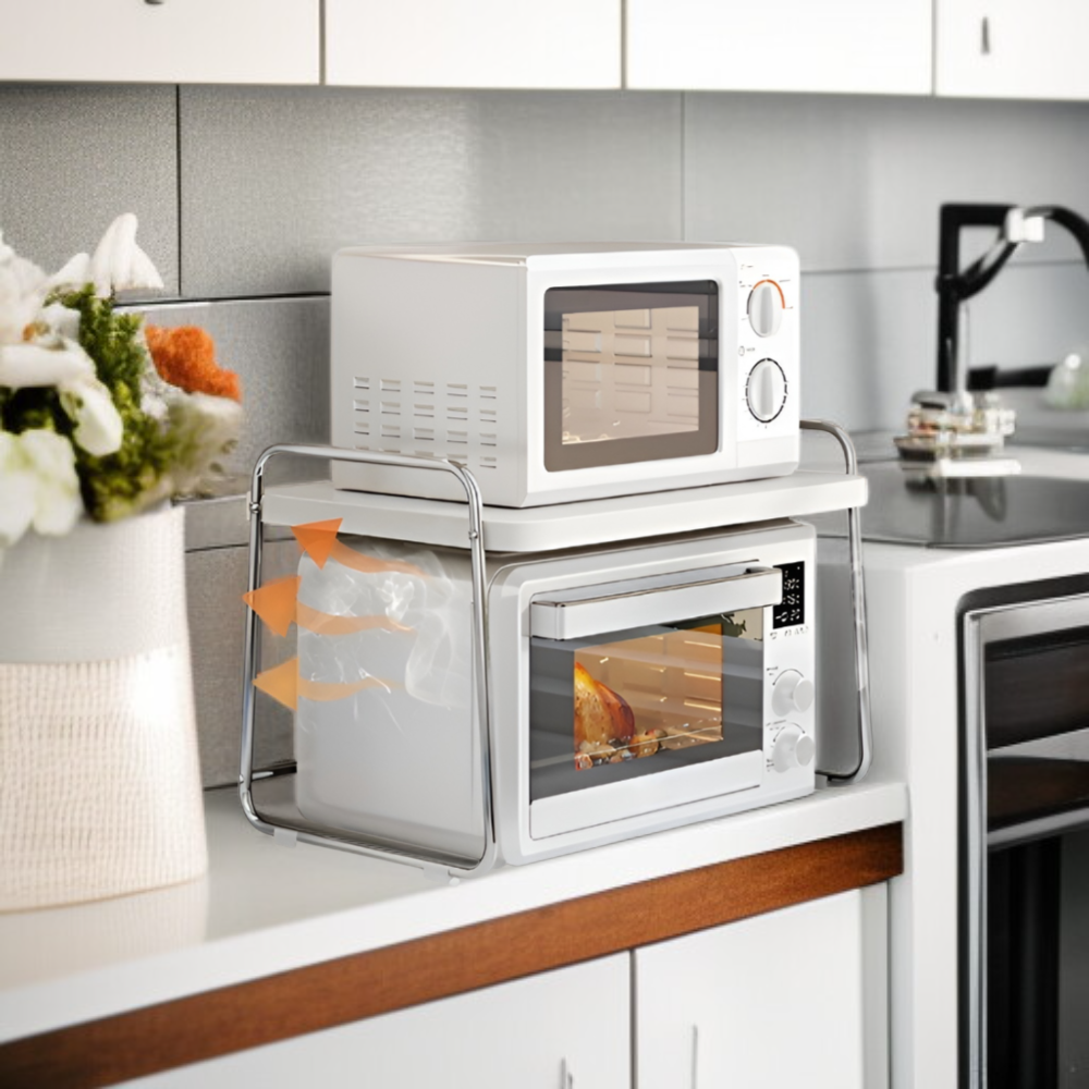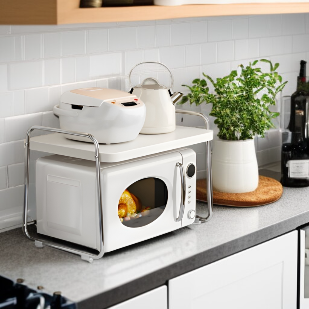 ● 고품질 스테인리스 소재로 제작되어 내구성이 뛰어나고 오랜 시간 변형 없이 사용할 수 있습니다. ● 전자레인지와 밥솥 등 다양한 주방 가전을 안전하게 수납할 수 있는 다기능 선반으로 공간 활용도를 극대화합니다. ● 간편한 조립과 세련된 디자인으로 주방 인테리어에 잘 어울리며, 청소와 관리도 매우 쉽습니다. ● 넉넉한 수납 공간과 견고한 구조로 주방 용품 정리를 깔끔하게 도와주어 실용성과 미관을 모두 만족시킵니다.
